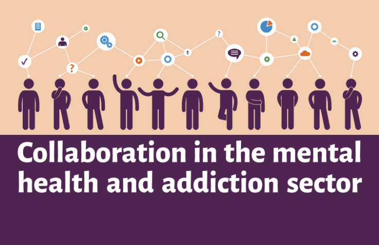 An infographic outlining the values and approaches that support effective collaboration in the mental health and addiction sector.