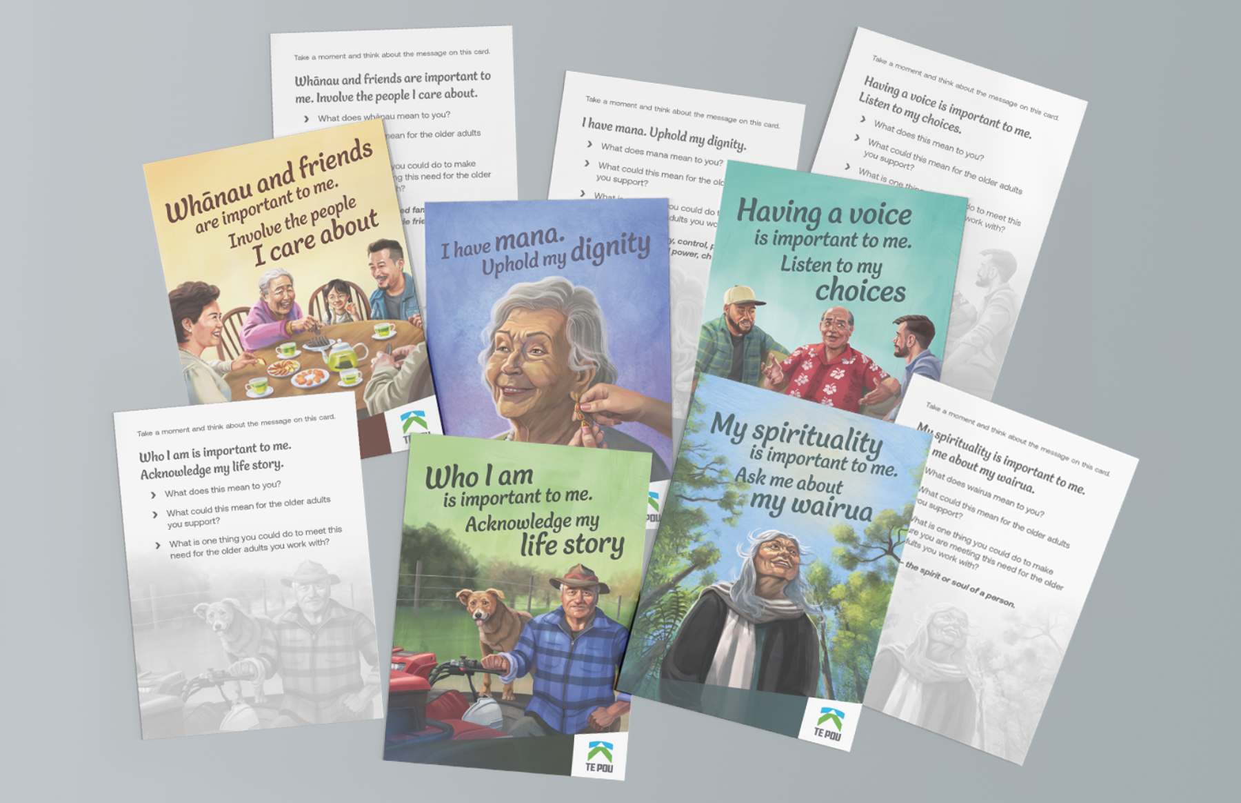 Each card carries a message drawn from research with older adults, reflecting how they wish to be treated when receiving support.