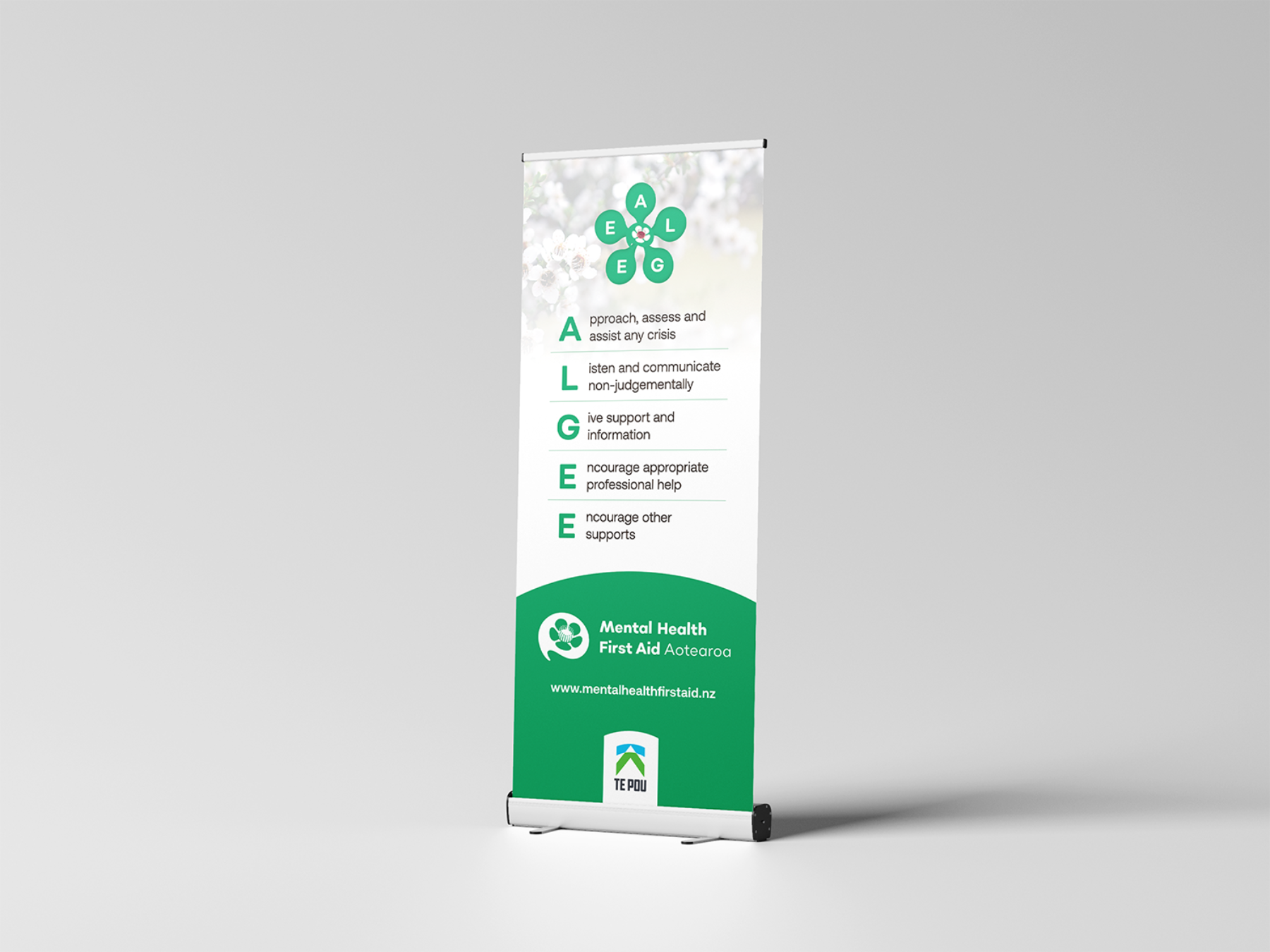 The Mental Health First Aid Aotearoa branded pull-up banners are durable and high-quality. They are a great way to promote the programme and help participants find your workshop.
